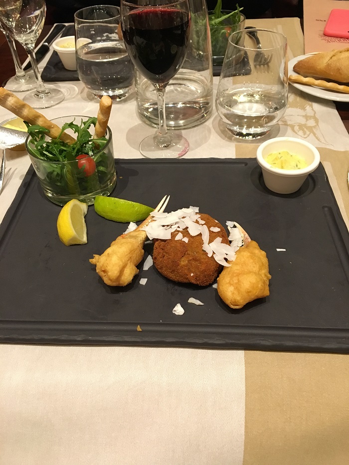 My Cajun spiced crab cake with snow crab claw tempura at the Chicago Steakhouse