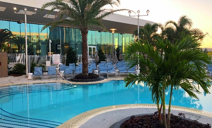 White and green pizza from Loews Portofino Bay Hotel, Universal Orlando