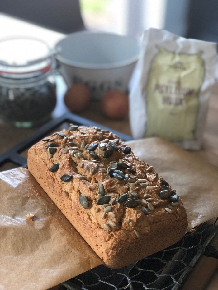 As usual, I started off thinking ‘oh, this will be an interesting experiment’ and then several hours and many scribbled notes later, I was still feverishly googling and comparing grain free bread recipes. After disappearing down a Pinterest rabbit hole, I’ve taken tips from lots of different people, tested lots of different recipes, added chia seeds, taken them away, created some hideously monstrosities that were either too dry or too ‘eggy’ and went straight in the bin, tried all-almond and all-coconut versions, and finally, I think this one is probably our favourite. Some of the ingredients look a little weird, but they honestly do serve a purpose. The apple cider vinegar, I read on one gluten-free baker’s site, had transformed her difficult-to-rise bread (plus I’ve tried it without and it’s definitely better with the addition of the vinegar), and the psyllium husk (get it from your local health food store or online) really does make a difference to the texture.
