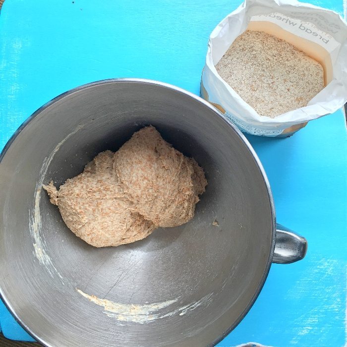 Now start kneading. If you’re using a food mixer, just bung it in for about five minutes and forget about it (great if you’re busy and need to crack on), but by hand is lovely and satisfying too – if I’ve got extra time I often do.