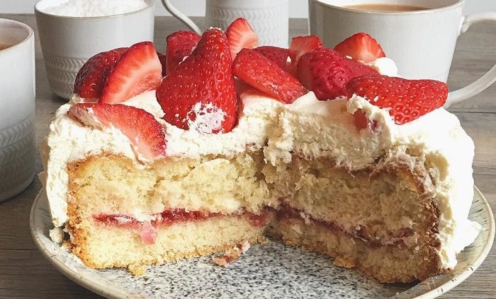 Pour into the prepared cake tin and bake for about half an hour or until a knife inserted into the centre comes out clean.